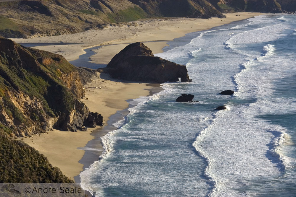 Logo no início da estrada, fica a ponte do Bixby Creek, que é o ícone mais famoso do Big Sur. A ponte é bem alta, e ali abaixo fica uma rávina que termina no mar bruscamente. Pela ponte, passamos rumo ao sul – e Big Sur, o nome, vem do espanhol que predominou na região “El Grand Sur”, o grande Sul.