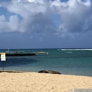 Como a praia de Kaimana é dos pedaços mais mansinhos de Waikiki e super-visitada por famílias com crianças, os voluntários do programa de proteção às focas-monges havaianas tiveram que montar acampamento 24 horas na praia. Isto para proteger as duas focas de serem incomodadas pelos inúmeros turistas e moradores locais que agora frequentam ainda mais aquele pedaço. Pelo menos 20 metros de distância são necessários entre as pessoas e as focas, para que elas possam ficar tranquilas, sem se sentirem ameaçadas ou estressadas.