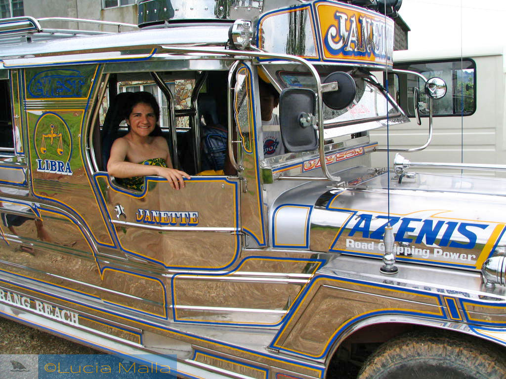 Andando de jeepney, o transporte terrestre filipino por excelência.