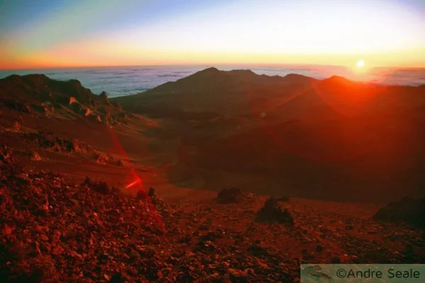 Para mim, um dos grandes momentos randômicos de plenitude da vida acontece quando presencio o nascer do sol – o que é raro, já que não sou muito fã de acordar de madrugada. Alguns amanheceres são especialmente maravilhosos, e deles guardo recordações de momentos etéreos, que parecem infinitos na minha memória. Como o nascer do sol dentro da cratera do Hale’akala, vulcão dormente da ilha de Maui, onde estive em 2003. Você sai no escuro de casa, pega uma estrada sinuosa loooooonga até o cume do Hale’akala a cerca de 3,000m e se posiciona na borda da cratera vendo o mar ao fundo. A surpresa ao chegar lá em cima, fica por conta da multidão de turistas madrugadeiros – parece inclusive que está chegando num número limite. Mas nem os turistas atrapalham a maravilha que é o visual lá de cima. O topo do Hale’akala é considerado um dos melhores lugares do mundo para se ver estrelas, planetas e diferentes luas, devido ao horizonte visível (e a limpeza do ar), que chega a 115 milhas de oceano. Simplesmente inacreditável.