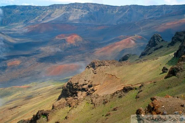 Estive esses dias relembrando o Hale’akala, com muita saudade. As cores que vi naquela cratera foram únicas, e o brilho do sol ao atingir os barrancos torna a paisagem vermelha intensa, quase lunar, espacial. Sabemos que vivemos na Terra, um planetinha tão frágil; mas com versatilidade suficiente para todos os dias pela manhã se revelar em fantasia de lua num endereço específico: cratera do Hale’akala, ilha de Maui, Havaí.