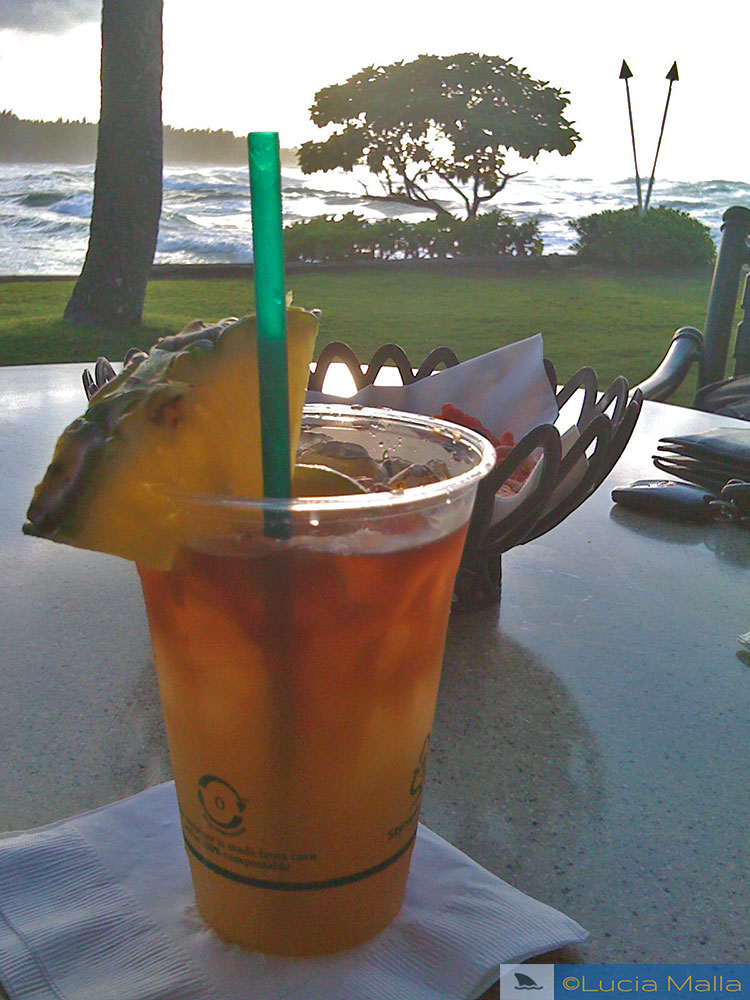 Dia desses, depois de um dia no North Shore vendo o surfe, fomos num happy hour no bar de um hotel. Um dos muitos que existem por aqui. Pedimos, para variar, um típico mai-tai (uma boa receita aqui), que combina maravilhosamente com um fim de tarde gostoso e com um por do sol à beira-mar.