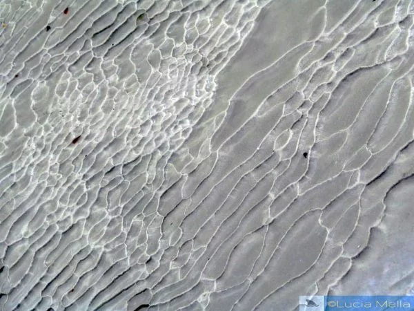 Sentada descansando ao lado de um “derrame” geotérmico, cujo solo de perto é feito nesse padrão maravilhoso! (abaixo)