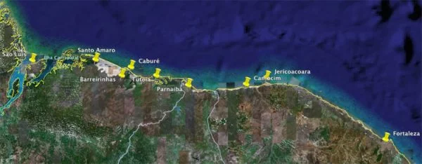 Quando decidimos incluir em nosso roteiro de viagem uma visita aos Lençóis Maranhenses – um sonho antigo – comecei a pesquisar pela internet e afins quanto custaria tal empreitada. Era a época ideal, junho, o auge da cheia das lagoas, e a oportunidade de boas fotos naquele local exótico atiçava ainda mais a imaginação. Eis que depois de muita busca, eu finalmente caio no post primoroso do super-Ricardo Freire sobre o trecho exato que queríamos fazer: de São Luís a Fortaleza, incluindo Santo Amaro, Delta do rio Parnaíba e Jericoacara. Imprimi o post apenas, antes de efetivamente ler os comentários. Mas quando fui lê-los, deparei-me com um comentário onde alguém citava o preço cobrado por uma agência de ecoturismo que fornecia esse trajeto (4,000 reais por pessoa!), e tomamos então o primeiro susto básico. Mas não desistimos do sonho, e resolvemos encarar a viagem assim mesmo.