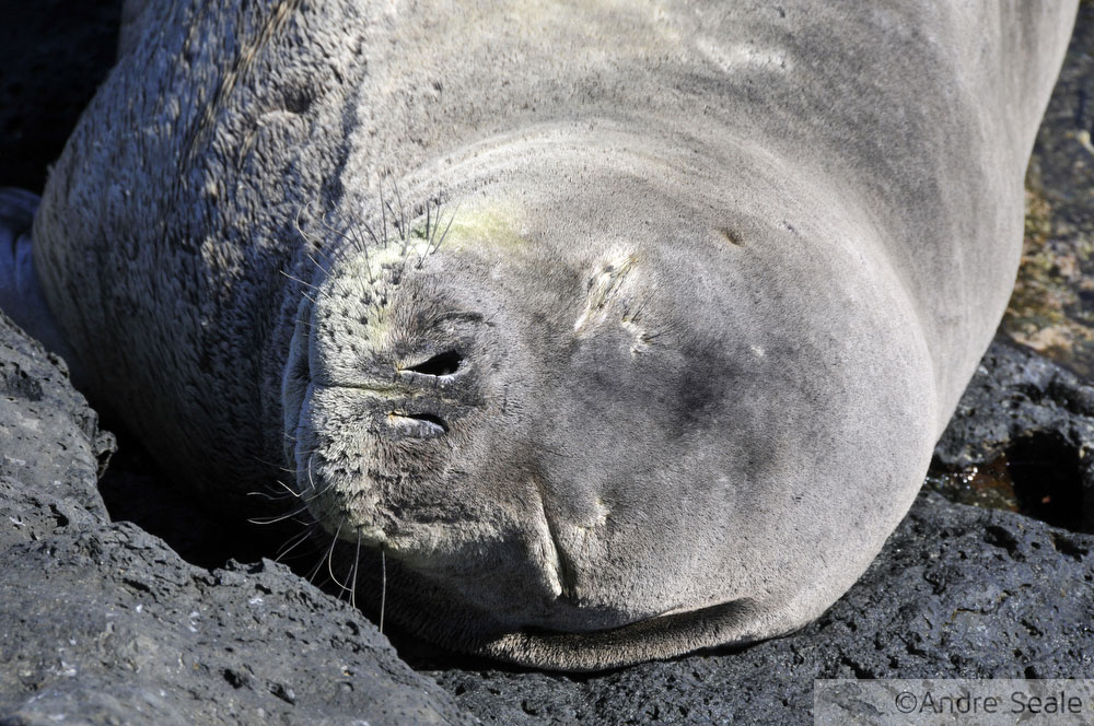 A foca estava na maior tranquilidade descansando na pedra. Nem aí pros visitantes que se aproximavam.