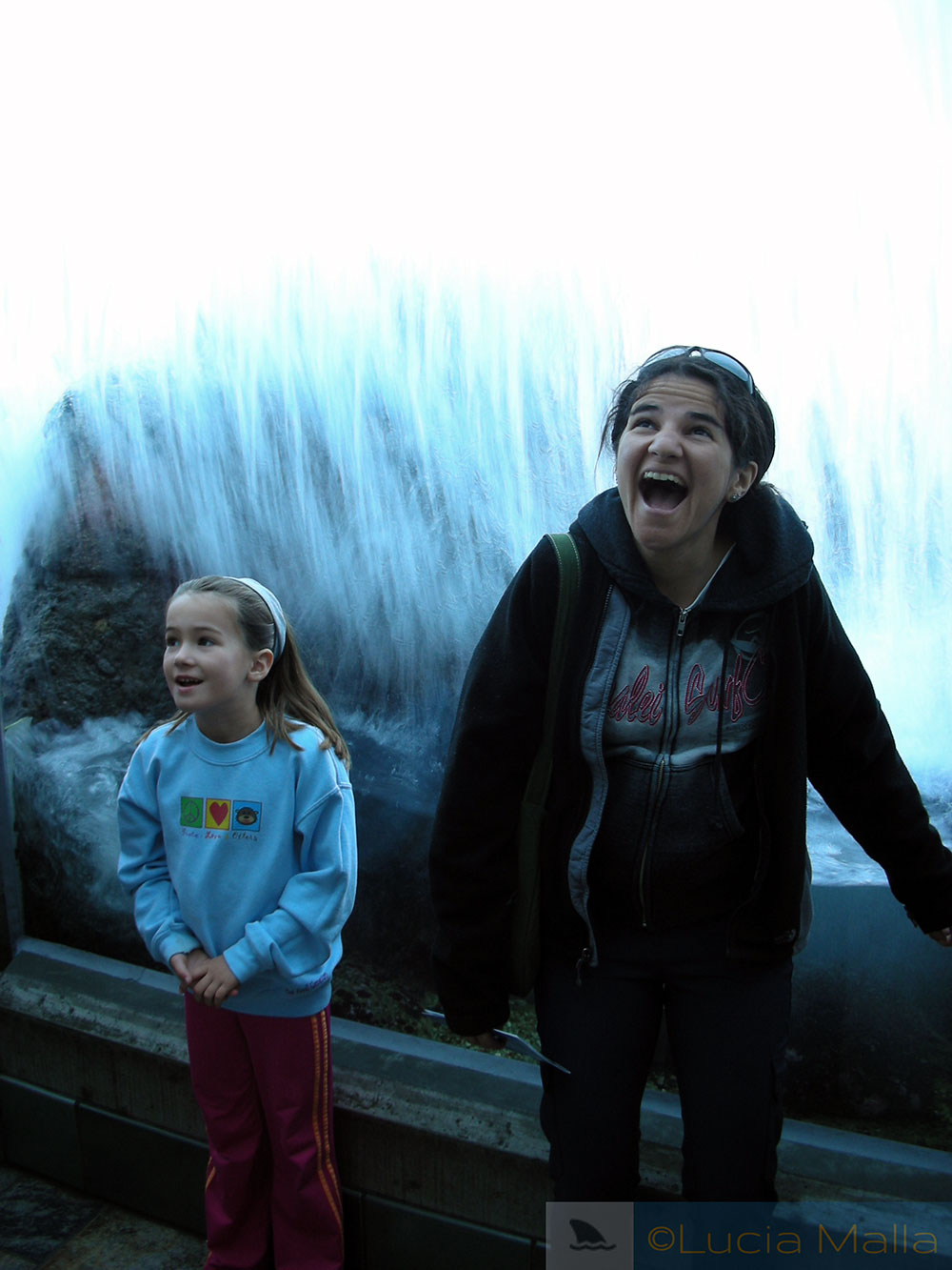 Quem é a criança, mesmo…? No túnel que passa por baixo da simulação de onda, com uma criança de verdade (e muito mais bem comportada que a vizinha adulta).