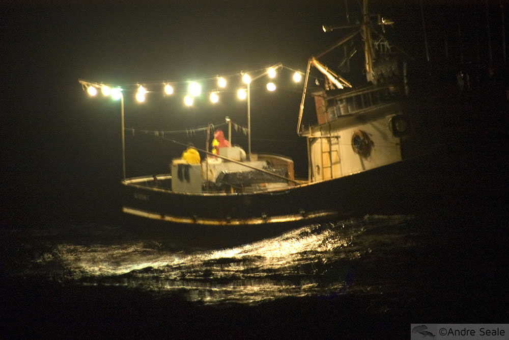 Mas o barquinho prossegue com suas lâmpadas, que atraem cardumes numerosos de peixe-voador (Cypselurus comatus). Esses são o alimento dos atuns, que no meio daquele emaranhado de peixe-voador pulando fora d’água, se alimentam. De vez em quando, caem na isca de peixe-voador que os pescadores colocam. Houve um tempo em que a pesca era do peixe-voador em si. Demorou pouco, entretanto, para os atuns desaparecerem da região e com eles, os lucros dos pescadores. Calejados, aprenderam ecologia na marra. Acabe com a presa e o predador, portanto, desaparece.