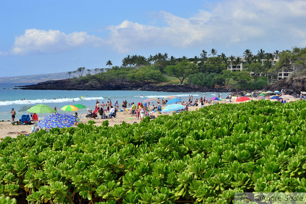 Porque a Big Island tem inúmeras praias. Mas ou elas têm areia de cores incomuns, como Punaluu ou Papakolea, ou as praias são pedregosas, como em Kealakekua. Ou então não há extensão decente de praia, como em Honaunau. Ou pior ainda, a praia tem tanto pedaço de coral que não dá nem pra esticar uma canga direito, como a praia do Hilton Waikoloa Village na costa de Kohala. Com tanta praia diferente, claro que uma praia “normal” com cara de praia de foto de instagram, com areia clara e mar azul, vai se destacar. Mesmo que não seja uma brastemp.