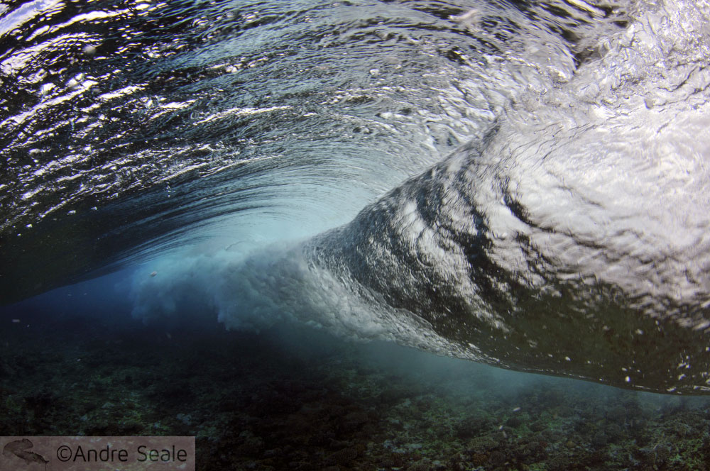 E já que um dos assuntos da semana por aqui foi o surfe no Palikir Pass, em Pohnpei… Deixo aí a componente mais famosa do local: a onda do Palikir Pass. Vista por baixo, por certo, pronta pra virar mais um tubo perfeito. Pronta para ser surfada por alguém, nem que seja um peixinho maroto perdido neste mundo tropical.