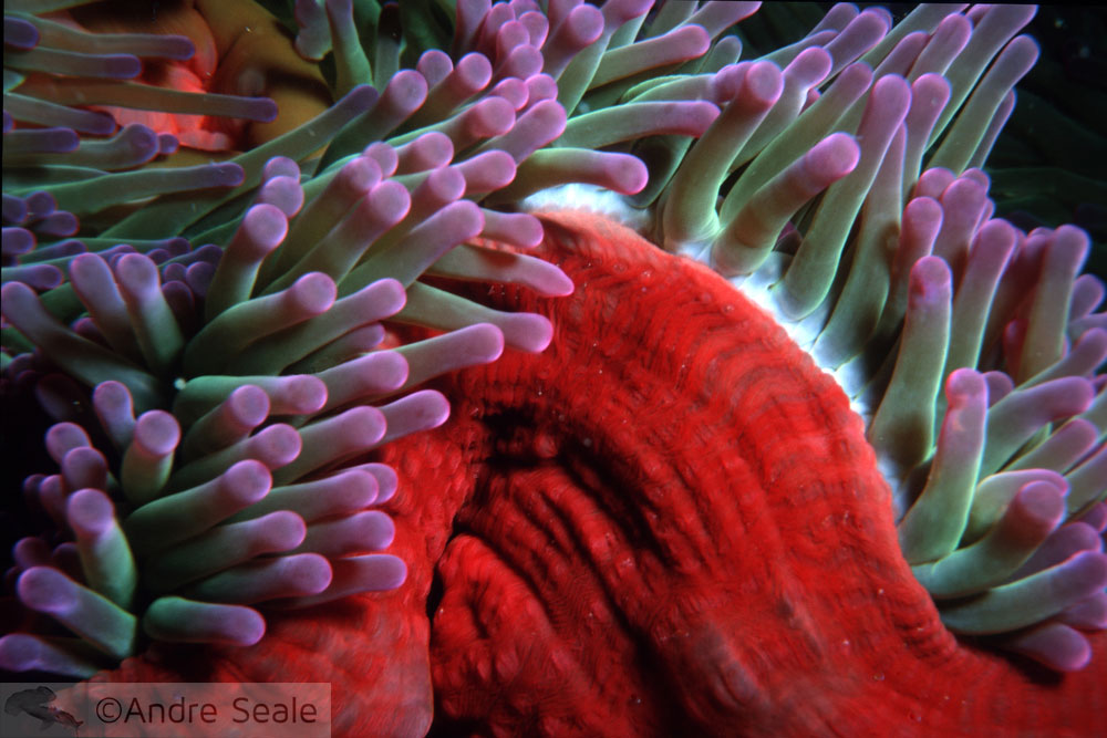E a foto da Sexta Sub é de uma anêmona vermelha (Heteractis magnifica) “derramando” seu manto. Tirada na Grande Barreira de Corais Australiana, é uma das inúmeras espécies que num acidente desse porte podem ser afetadas de maneira drástica. Triste.