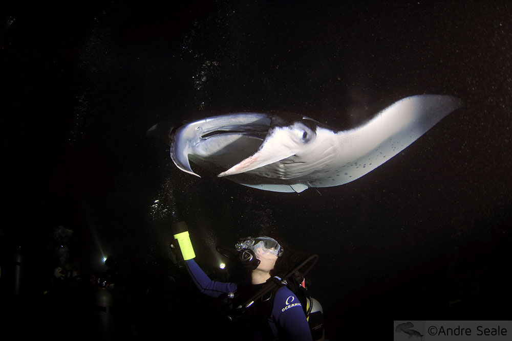 Para quem não tem certificação de mergulho e pensa em fazer o snorkel, é importante saber que a área é superabrigada e as pessoas não ficam soltas no mar infinito. Todos se seguram a uma boia, que fica amarrada a uma corda, essa corda ao barco e o barco ancorado :-), não há como se perder do grupo sem querer ou qq outra coisa a temer. É só curtição! E se quiser voltar ao barco, ele está ali ao lado o tempo inteiro. A visão que se tem das jamantas é quase igual a de quem está mergulhando, porque elas ficam rodopiando.