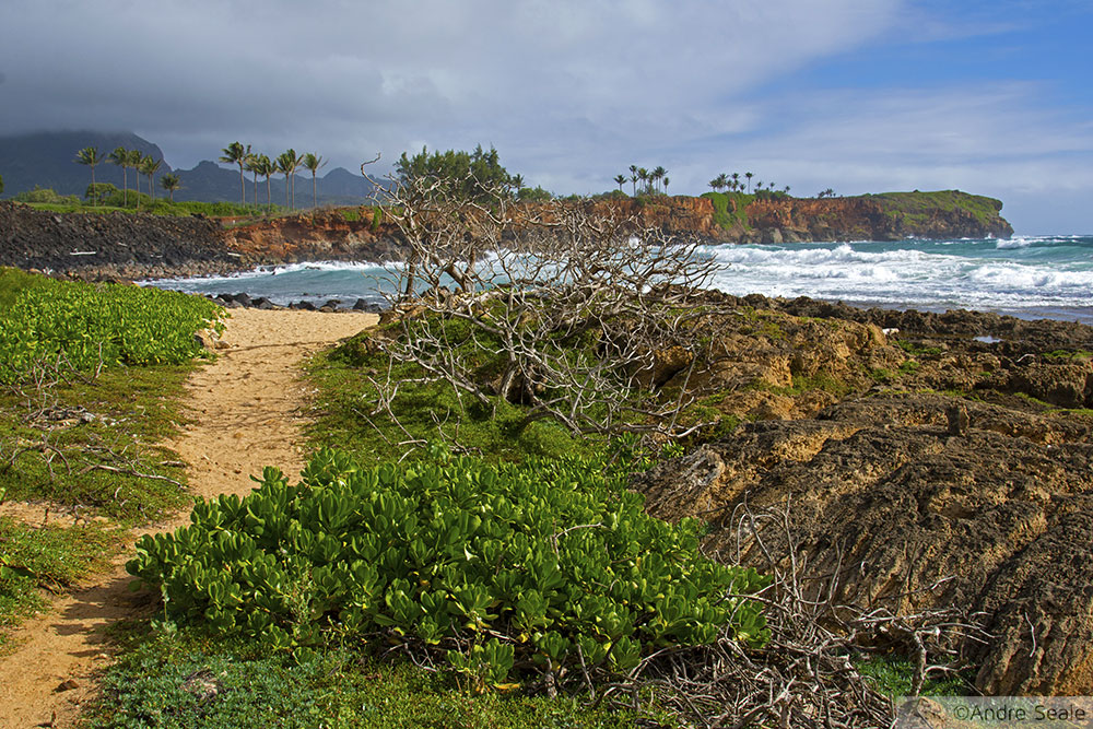 A marcação da trilha não é muito boa. Mas em geral, você verá bastante gente fazendo a mesma todo dia. Isto porque a trilha é um ponto popular de caminhadas e corrida entre os moradores da região. Além disso, é só margear o mar, então não tem como se perder. Afinal, todos os caminhos levam a Mahaulepu. 😀