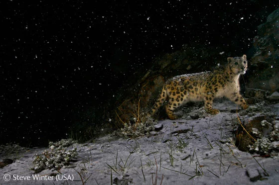 A vencedora geral do WPY deste ano foi também uma das minhas prediletas deste ano (o que não é comum). Fotografada com câmera remota, mostrou que na era das digitais, está valendo toda técnica para obter uma boa imagem – e Steve ficou 10 meses para conseguir a imagem única vencedora. O leopardo da neve é um animal criticamente ameaçado de extinção. Vive na Ásia Central e o da foto foi visto nas montanhas do Parque Nacional de Altitude Ladakh’s Hemis, na Índia. O fotógrafo Steve Winter ganhou o prêmio especial de Vida Ameaçada com 3 imagens, essa e outras 2 também muito marcantes.